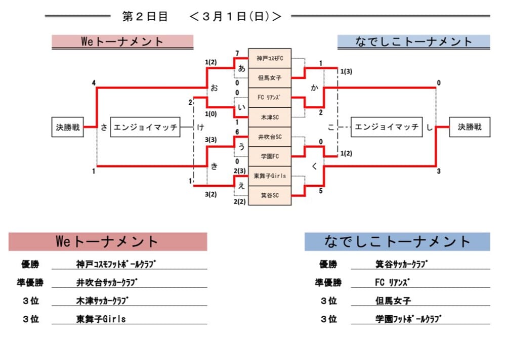 1位:東舞子SC、2位:若草少年SC、3位:ルゼルSC、4位:FCフレスカ神戸