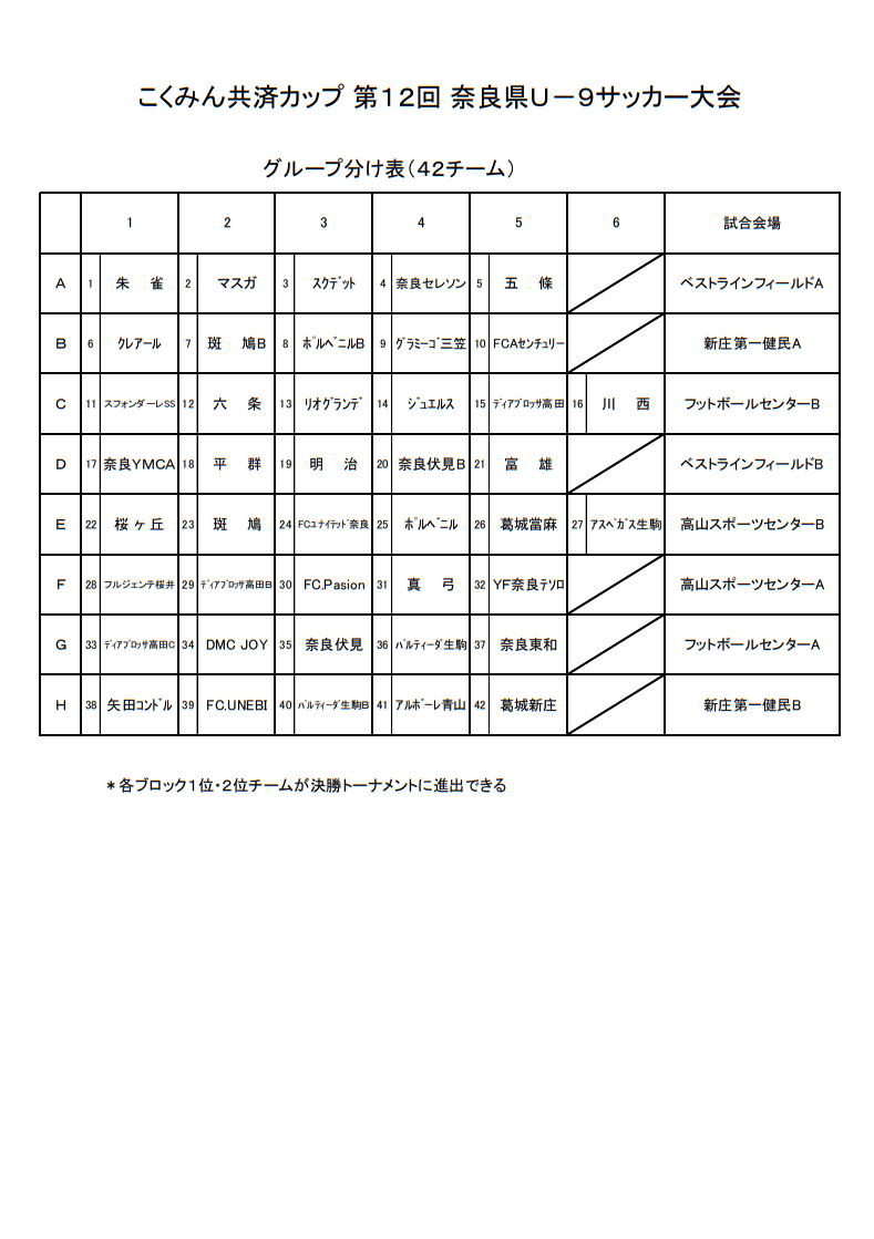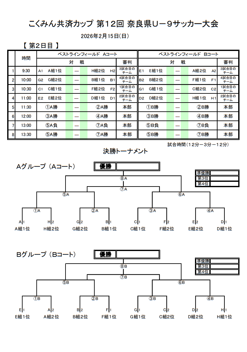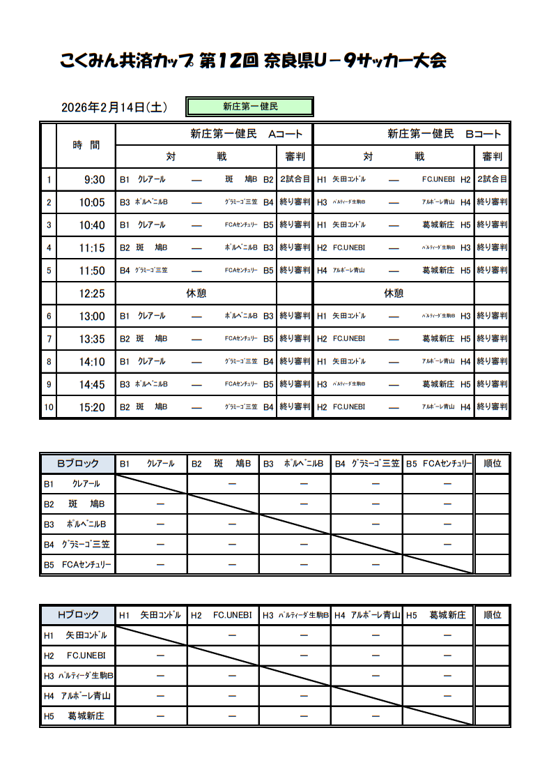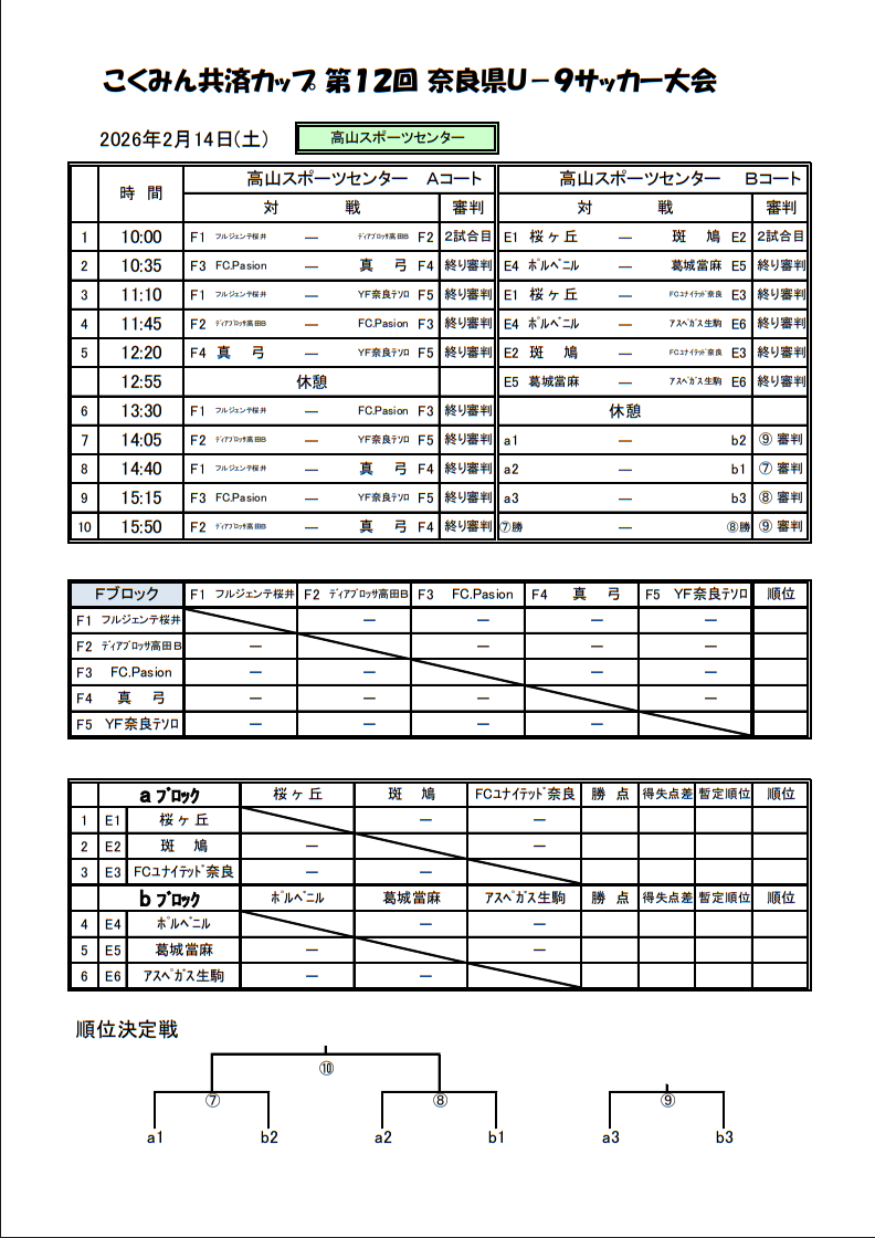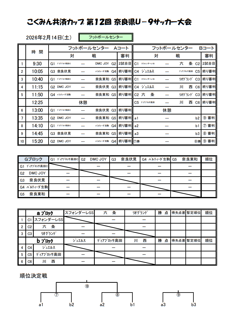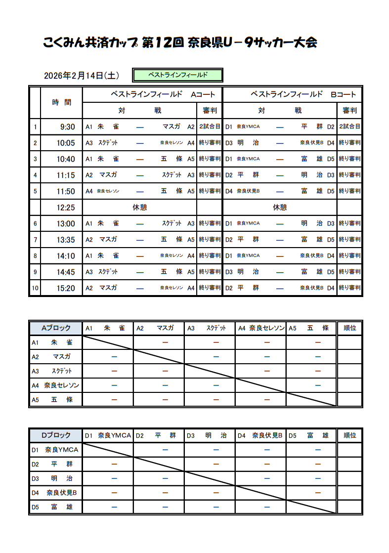 2025年度 こくみん共済カップ 第12回奈良県U-9サッカー大会 2/14.15開催!組合せ掲載 情報ありがとうございます
