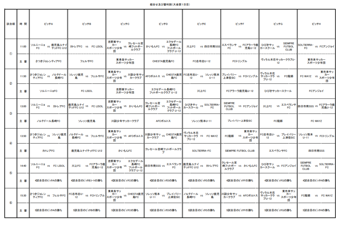 鹿児島ユナイテッドFC U12、カトレアFC、吉野東サッカースポーツ少年団、かいもんFC、SIEMPRE FUTBOL CLUB、SOLTIERRA・FC、FCアンジョイ、川上FC、FCアラーラ鹿児島U-12、さつきジョレンティアFC、ソレッソ鹿児島、東串良サッカースポーツ少年団、AFCポルトス、CHESTA鹿児島FC、FC龍郷、FC WAYZ、東市来サッカースポーツ少年団 、FC志布志U-12、FCトリンブル