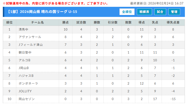 2026年度 高円宮杯岡山県U15サッカーリーグ(晴れの国リーグ)