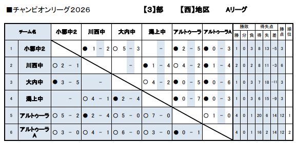 小郡中2、川西中、大内中、潟上中、アルトゥーラアルトゥーラA