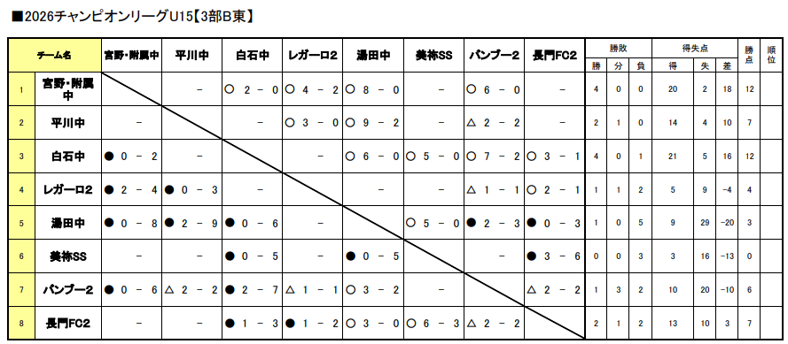 宮野・附属中、平川中、白石中、レガーロ2、湯田中、美祢SS、バンブー2、長門FC