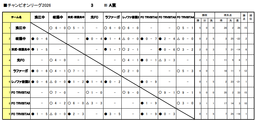 浅江中、岐陽中、末武・附属光中、光FC、ラファーガ、レノファ岩国2、FC TRVISTA2、FC TRVISTA3、FC TRVISTA4