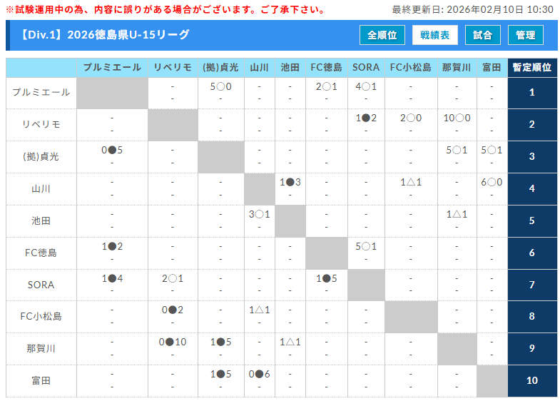 2025年度 高円宮杯U-15サッカーリーグ 徳島県リーグ 10/21までの結果掲載! Div.1優勝はCSPサッカーアカデミー!