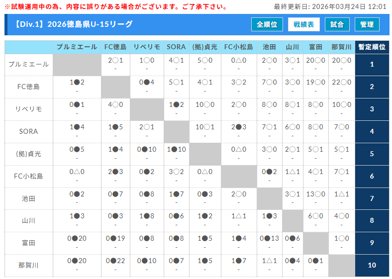 プルミエール、リベリモ、FC徳島、FC小松島、富田、那賀川、(拠)貞光、SORA、山川、池田