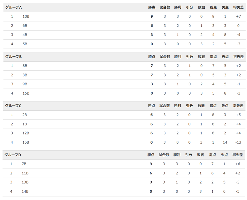 決勝リーグ・グループB