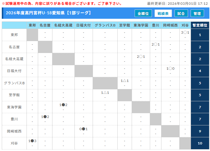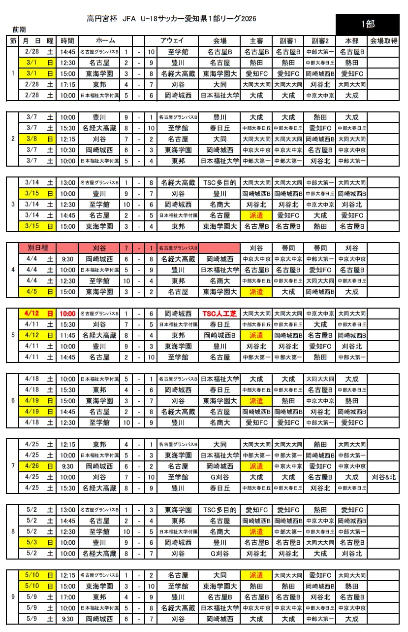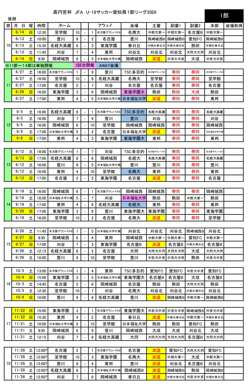 2026年度 高円宮杯 JFA U-18サッカーリーグ 愛知県1部