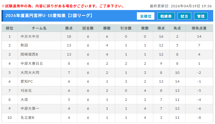 2026年度 高円宮杯 JFA U-18サッカーリーグ 愛知県2部