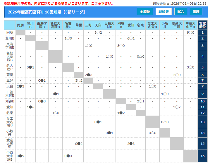 2026度 高円宮杯 JFA U-18サッカーリーグ 愛知県3部