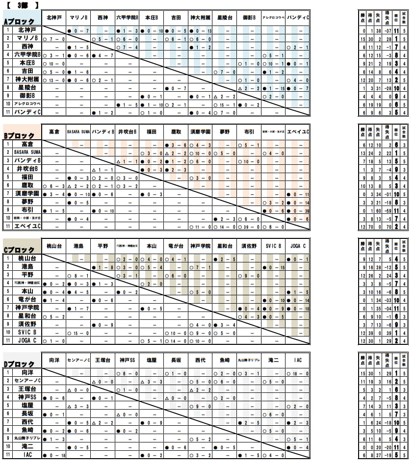 マリノFC A、BASARA HYOGO B、御影太田サンターリオB、歌敷山玉津西落合ソルブリジャンテ有野V神戸UMDS B