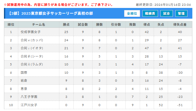 2025年度 第45回東京都女子サッカーリーグ高校の部