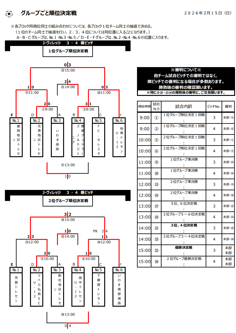 予選リーグ 2/14組合せ