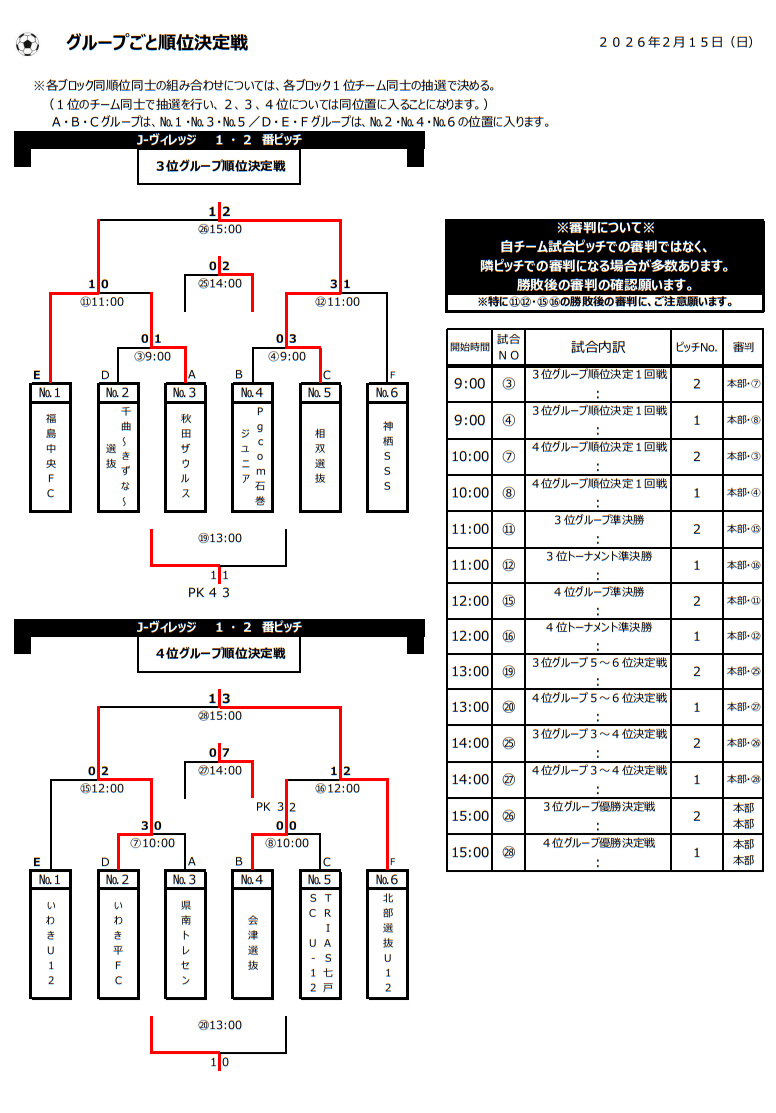 Bブロック:会津選抜、Pgcom石巻ジュニア、鹿島アントラーズノルテジュニア、県中トレセンU-12
