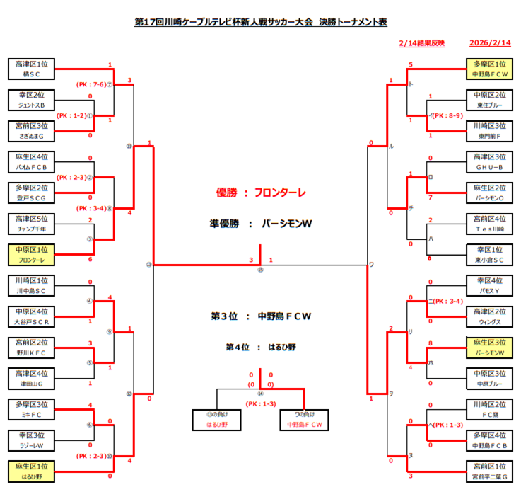 はるひ野〔麻生区1位〕 0-0(延長0-0.PK1-3) 中野島FC W〔多摩区1位〕