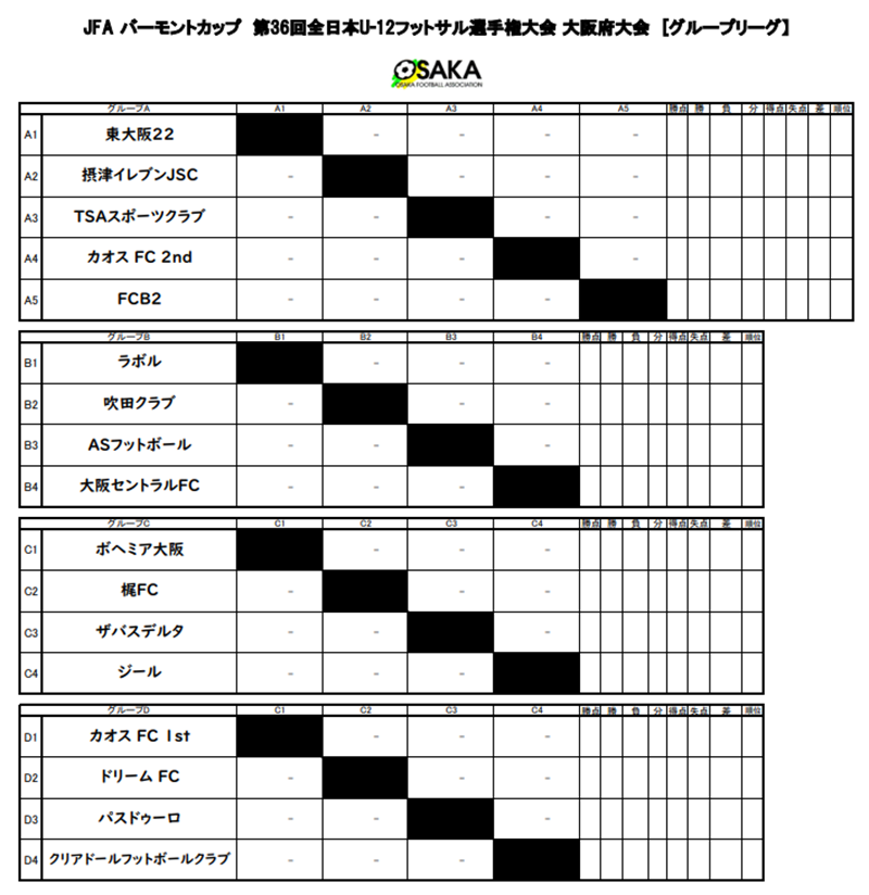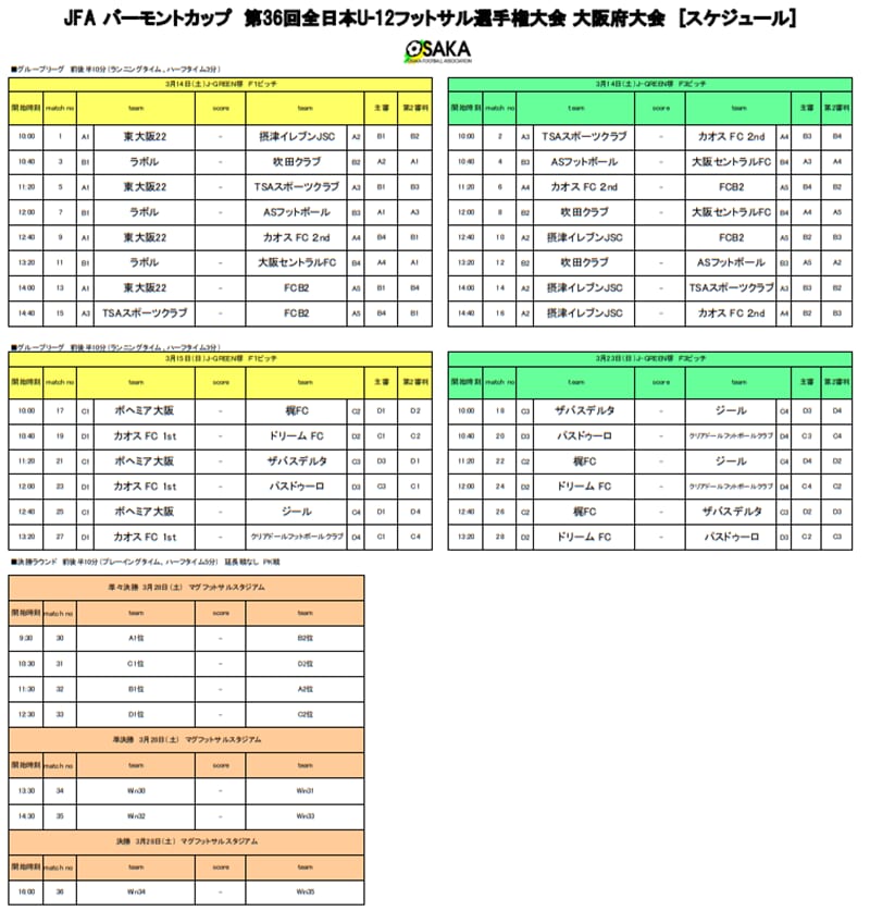 JFAバーモントカップ第36回全日本U-12フットサル選手権大会大阪府大会
