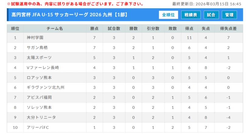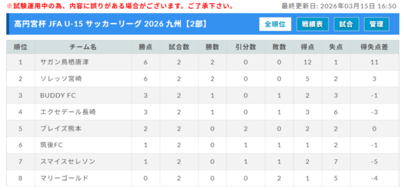 高円宮杯 JFA U-15サッカーリーグ 2026 九州
