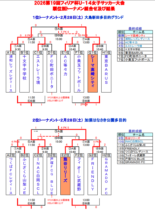 順位別トーナメント戦:8チーム5グループによるトーナメント戦を行い、各グループの順位及び全順位を決定する。