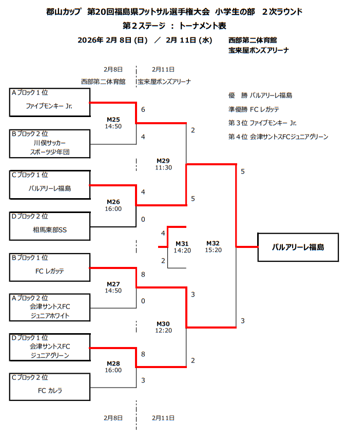 Dブロック:会津サントスFCジュニアグリーン、相馬東部SS、ブレイヴFC守山、ACバンビィ1st