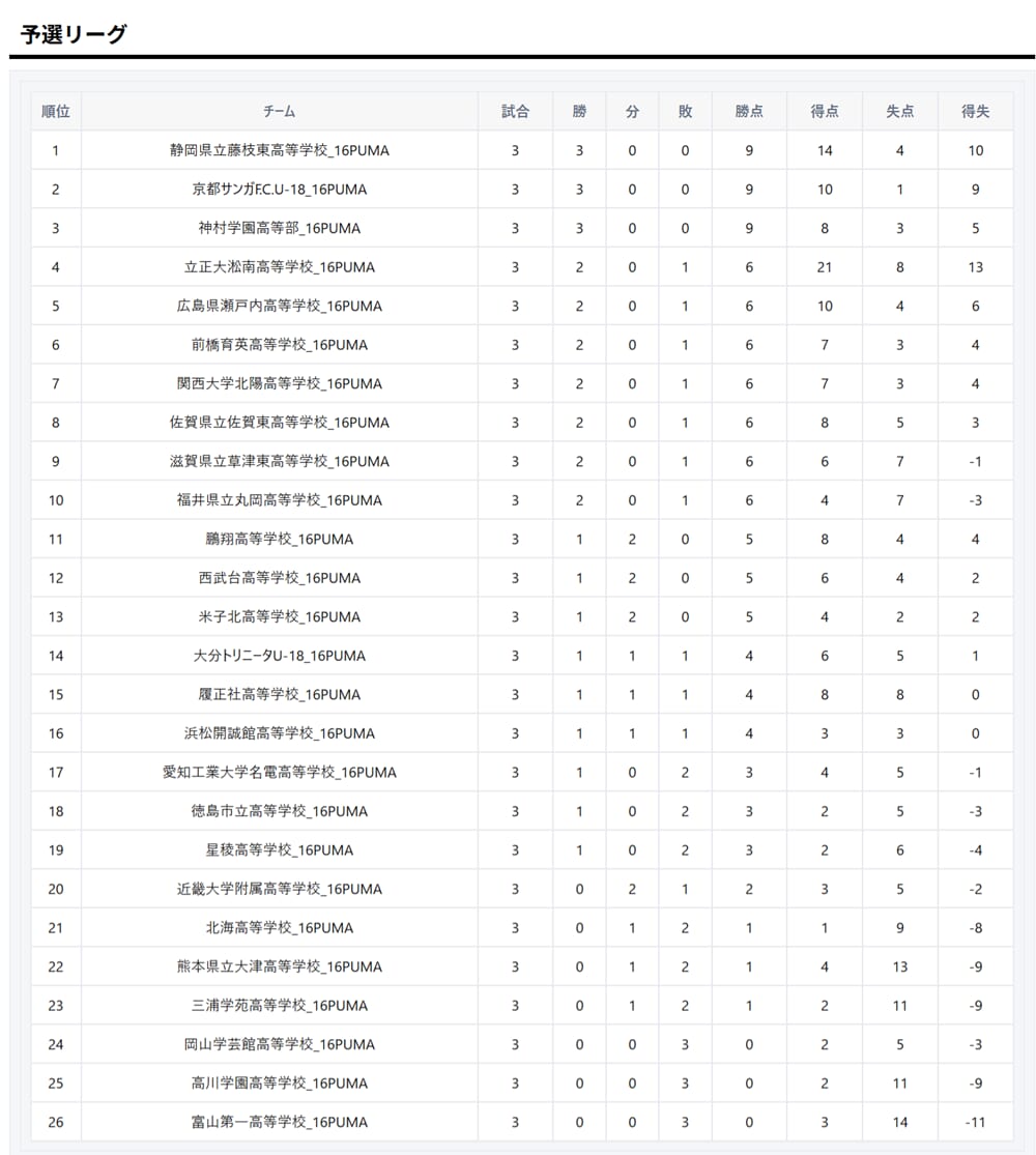 優勝:京都サンガF.C.U-18 ※同点の場合は予選リーグ順位にて決まる場合は準優勝、大会要項には記載なし