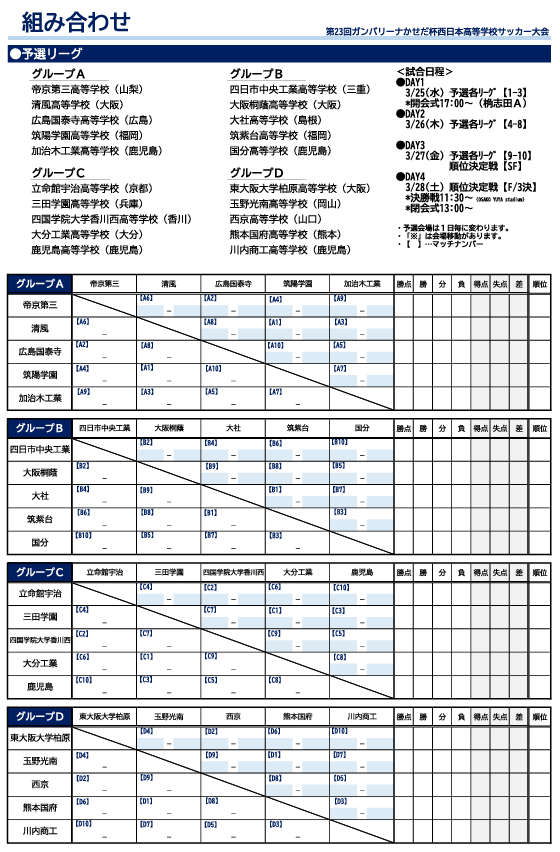 2025年度 第23回ガンバリーナかせだ杯西日本高等学校サッカー大会