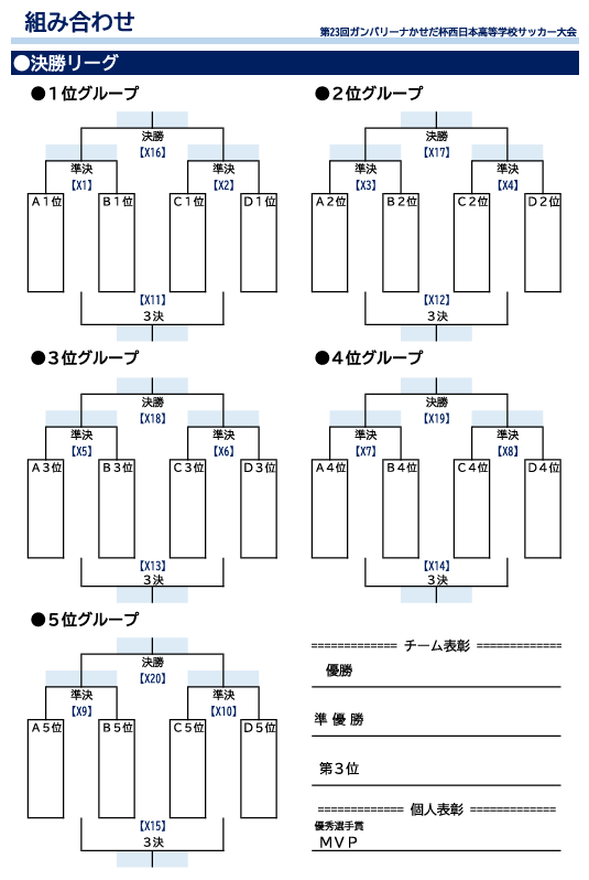 (1)試合は予選リーグ、決勝リーグを行い、順位を決定する。