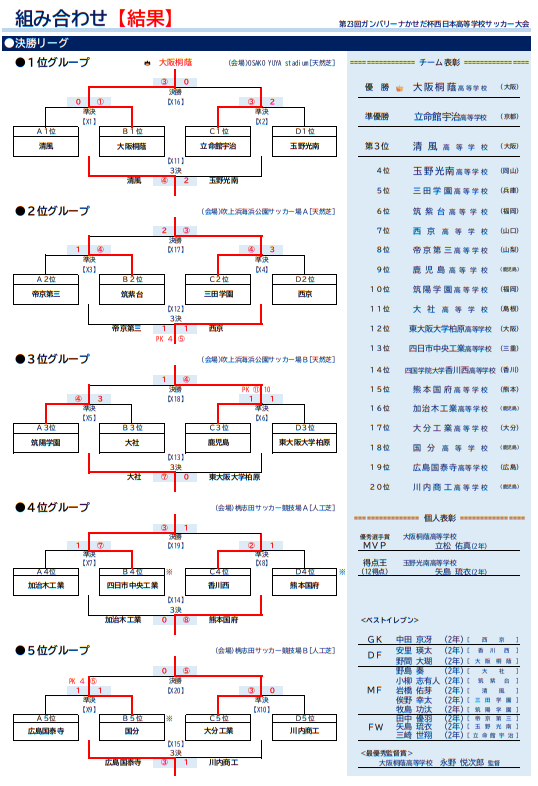2025年度 第23回ガンバリーナかせだ杯西日本高等学校サッカー大会(鹿児島開催)優勝は大阪桐蔭高校!情報ありがとうございます!ベストイレブン掲載!