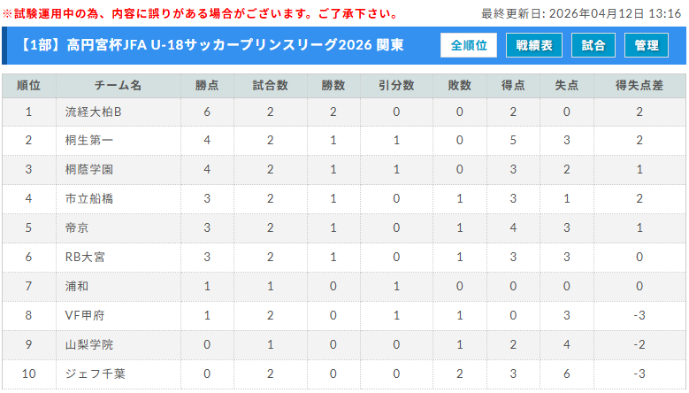 高円宮杯JFA U-18プリンスリーグ2026 関東supported by G-Vinculo