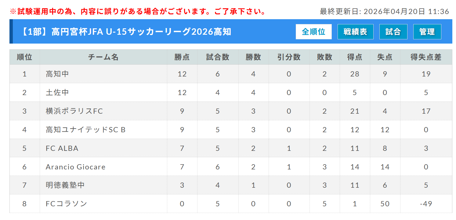 高円宮杯JFA U-15サッカーリーグ2026高知