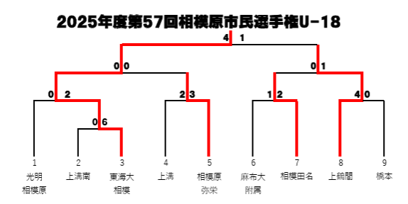 上鶴間高校4-0(前半0-0、後半4-0)橋本高校