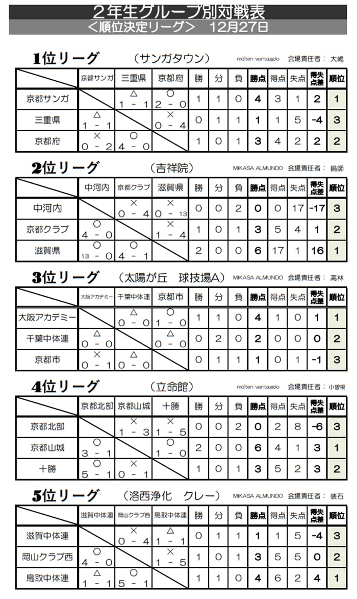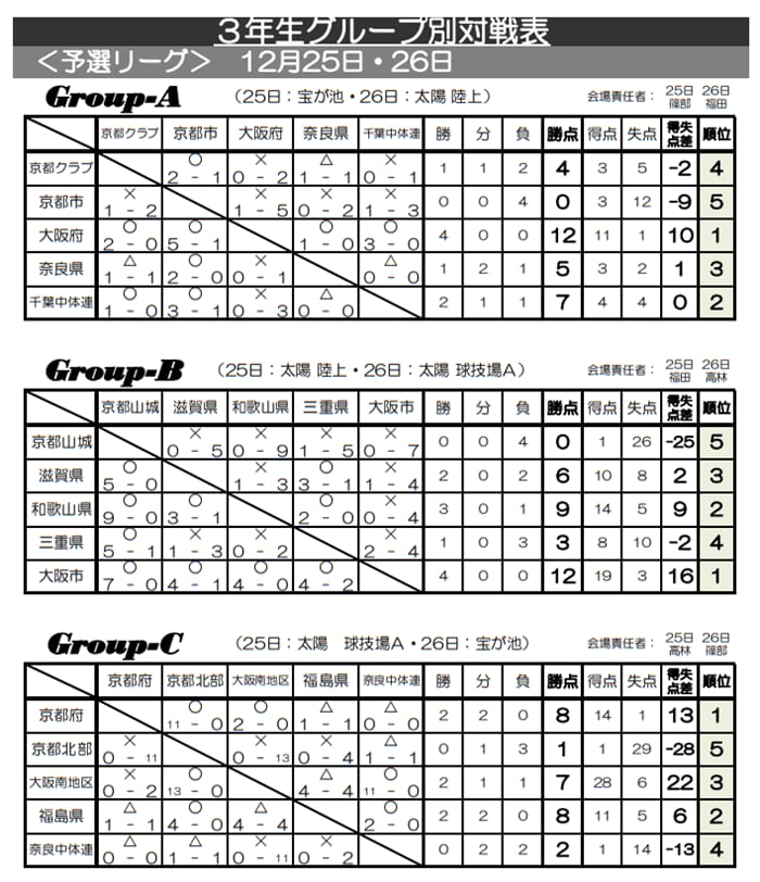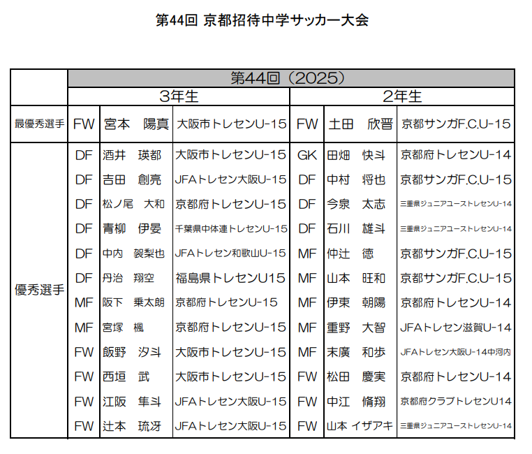 2024年度 第43回京都招待中学サッカー大会 優勝は3年の部・大阪府トレセン、2年の部・京都サンガF.C!全結果・大会優秀選手掲載
