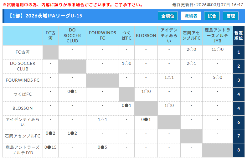 高円宮杯JFA U-15サッカーリーグ2026茨城IFAリーグ