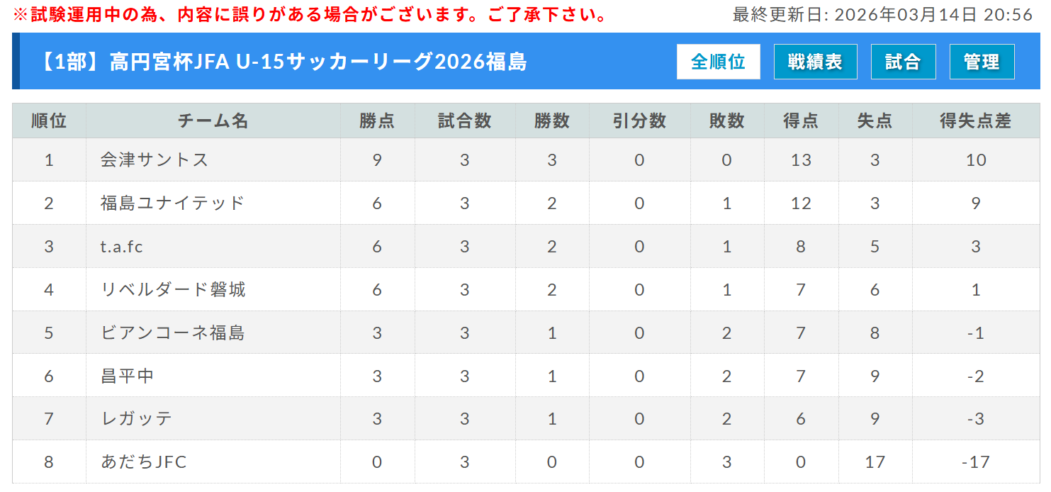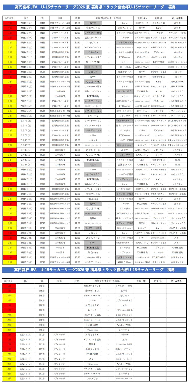 高円宮杯JFA U-15サッカーリーグ2026福島 兼 福島県トラック協会杯U-15サッカーリーグ