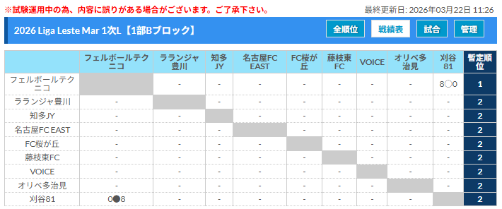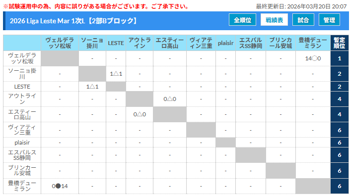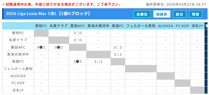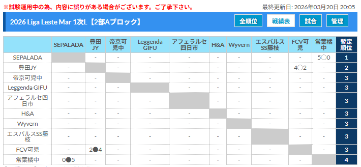 2026年度 LLM/Liga Leste Mar リーガレスチマール東海 3/20,21,22結果更新!入力ありがとうございます!次回開催判明日 3/29,31、4/1
