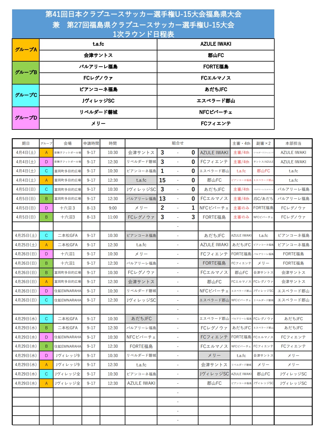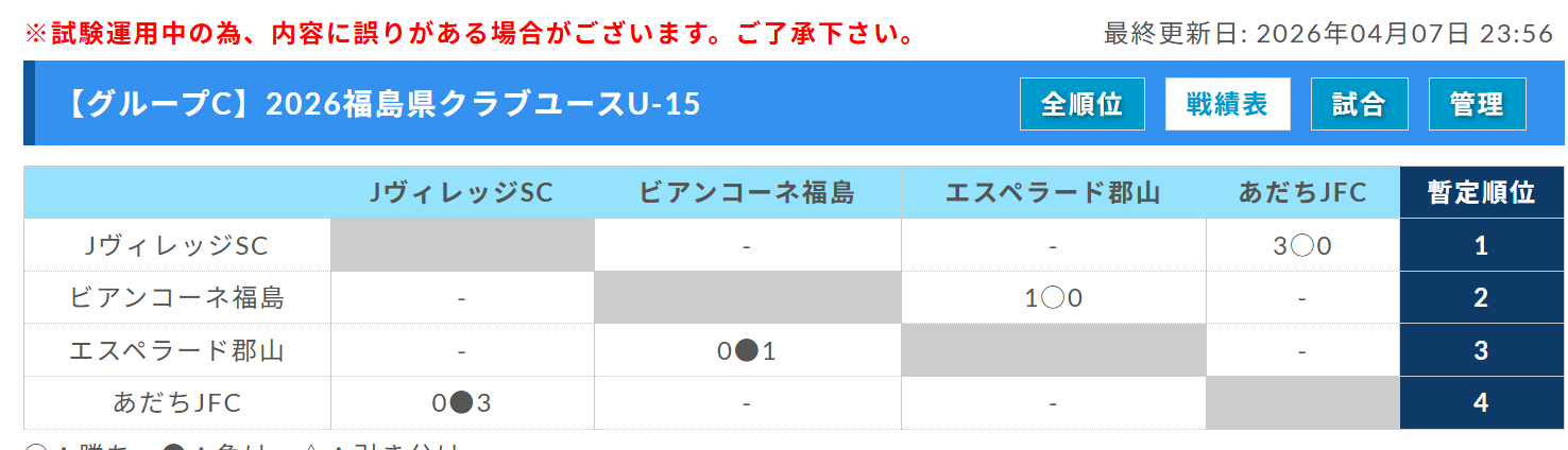 ビアンコーネ福島、あだちJFC、JヴィレッジSC、エスペラード郡山