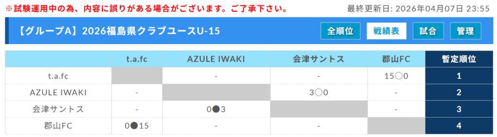 2026年度 第27回福島県クラブユースサッカー選手権 U-15大会