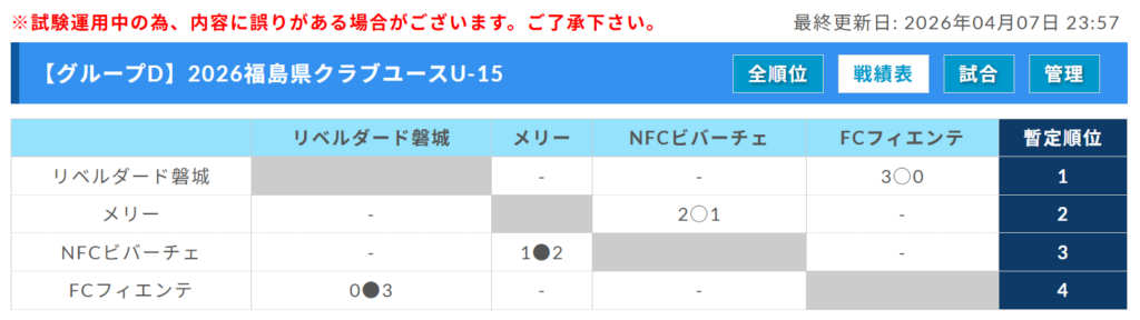 リベルダード磐城、NFCビバーチェ、メリー、FCフィエンテ