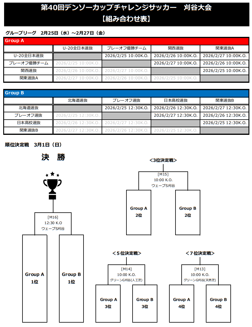 U-20 全⽇本選抜、北海道選抜、関東選抜 A、関東選抜 B、関⻄選抜、プレーオフ優勝チーム、プレーオフ選抜、⽇本⾼校選抜
