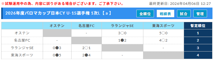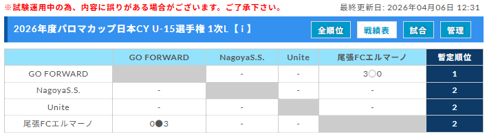 近々にリーグ表など準備させていただきます。