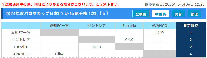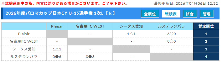 1次組合せに加え、2次、決勝トーナメント・順位決定戦まで大会の進行が分かりとっても嬉しいです。ご協力ありがとうございます。