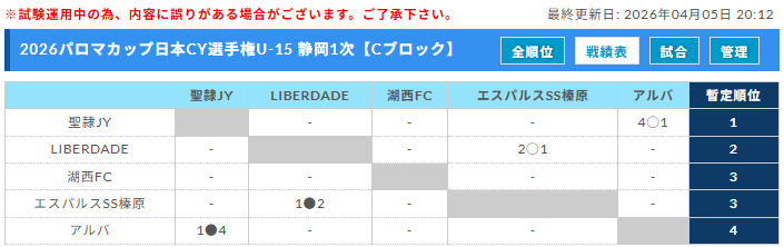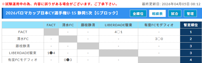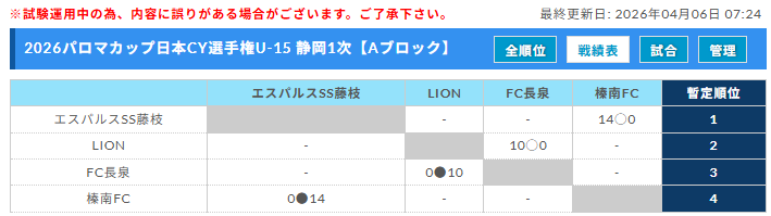 FC Fuji、浜名JYC、FC時之栖、1次A1位