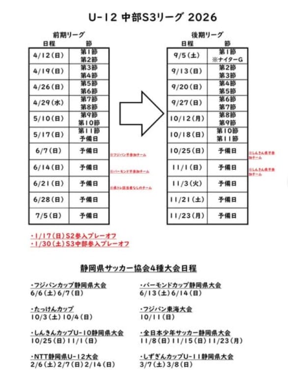 ・2026年度 SHIZUOKA U-12 S-LEAGUE/静岡県S1・2リーグ