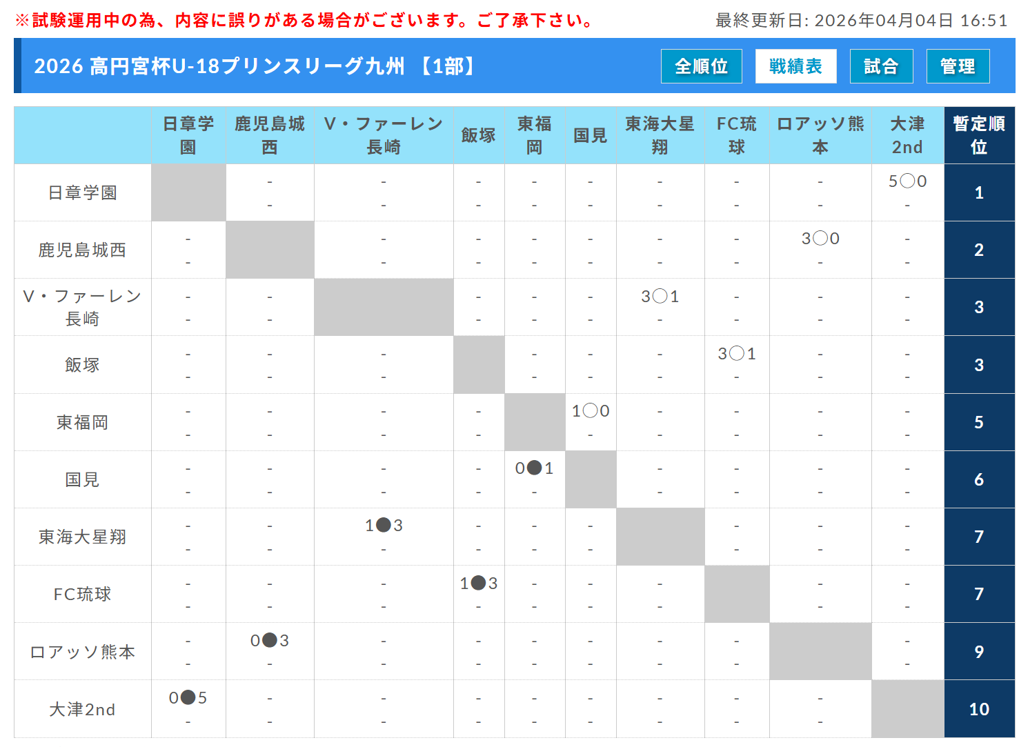2026年度 高円宮杯U-18プリンスリーグ九州