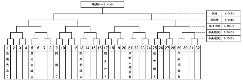③前大会(令和7年度大阪高校総体)ベスト4は中央トーナメント1回戦シードとする。(合同チームは該当しない。)