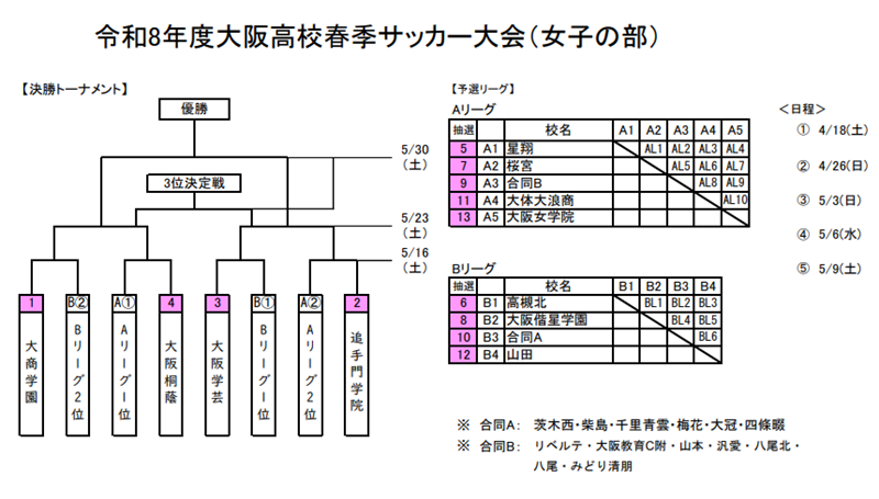5.前大会(大阪高校新人サッカー大会)ベスト4は決勝トーナメント1回戦シードとする。(合同チームは該当しない。)