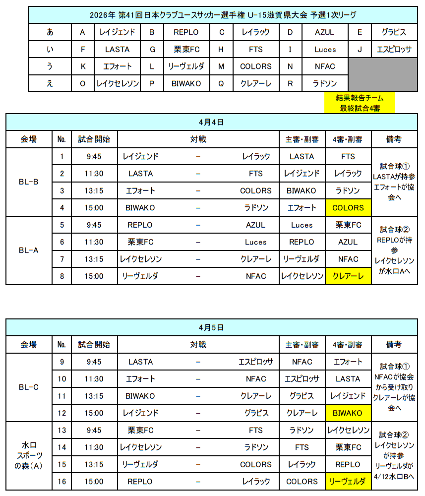 2026年度 第41回日本クラブユースサッカー選手権(U-15)滋賀県大会