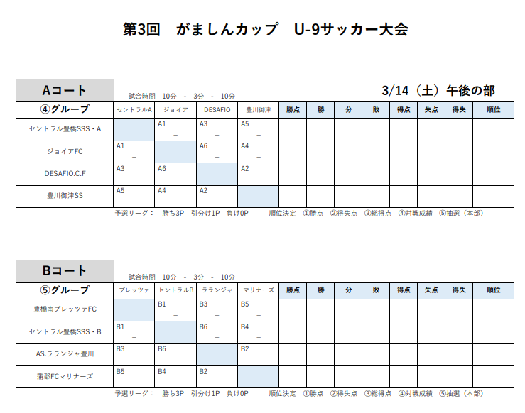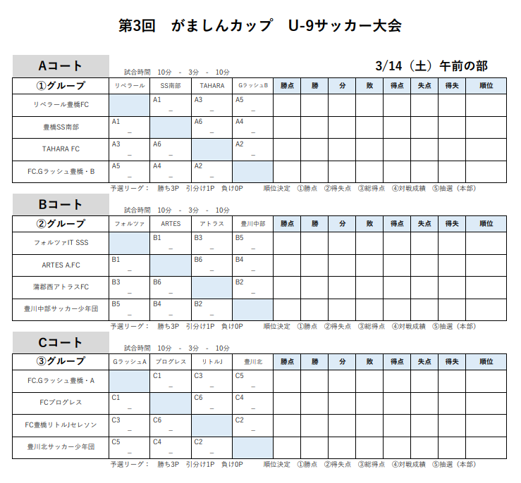 ≪予選リーグ≫ 試合時間:10分-3分-10分