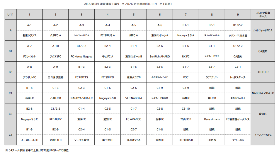 AIFA 第5回津留建設⼯業リーグ2026 名古屋地区大会U-11