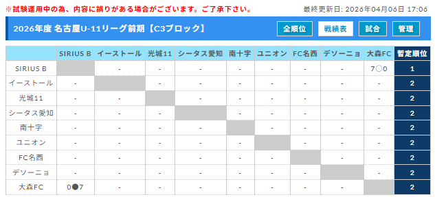 ・後期リーグの結果にて、2026年度U12リーグ前期のブロック分けに反映する