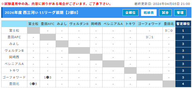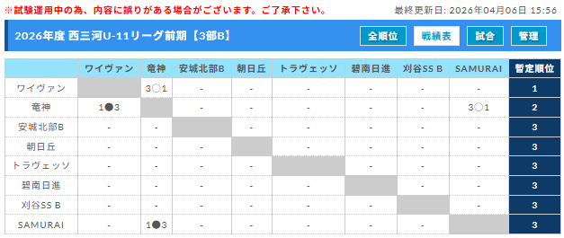 みよし、ヴェルダンB、岡崎西、ゴーフォワード、豊田AFC、富士松、ペレニアルA、豊田北、トキワ
