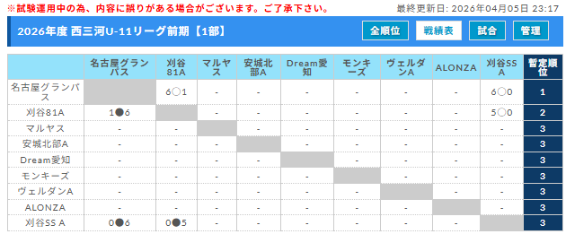 幸田jr、刈谷南、安城SSS、オステン、細川、西尾、豊南、豊田東、ゼラス